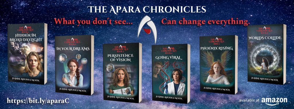 The Apara Chronicles is a new series of novels by Jeanne Rhodes-Moen. It’s a new take on an old theme, so prepare to throw out the rule book. This series takes beings that are traditionally the denizens of paranormal fantasy or horror and makes them noble creatures, dedicated to humanity’s survival and evolution into a true civilization. They live among us, look like us, and don’t exhibit the mythological tells of what they are.